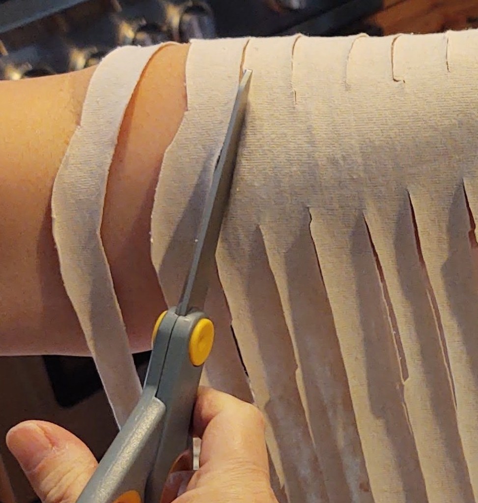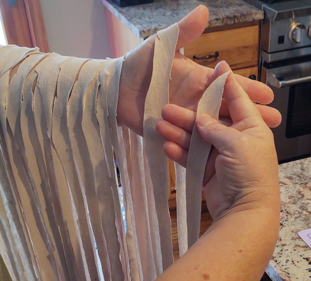 Fan the “strips” out to ensure all are cut through. If any fibers are hanging on, cut them with scissors or the rotary cutter